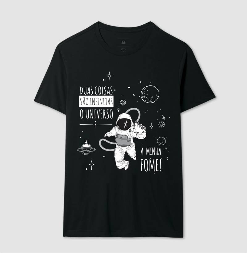 Camiseta Duas Coisas são Infinitas, o Universo e minha Fome!