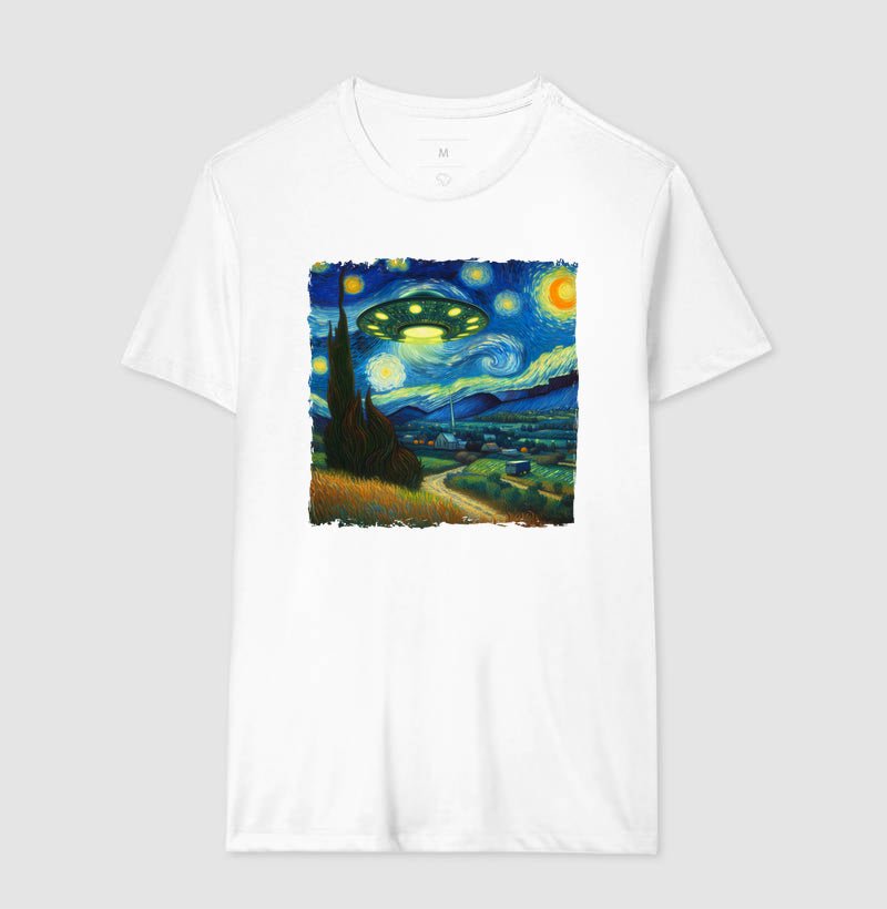 Se você busca um presente especial para um apaixonado por arte ou um toque de exclusividade ao seu próprio estilo, a Camiseta O Ovni de Van Gogh é a escolha ideal. Sua estampa charmosa e cheia de significado certamente chama atenção por onde passa.