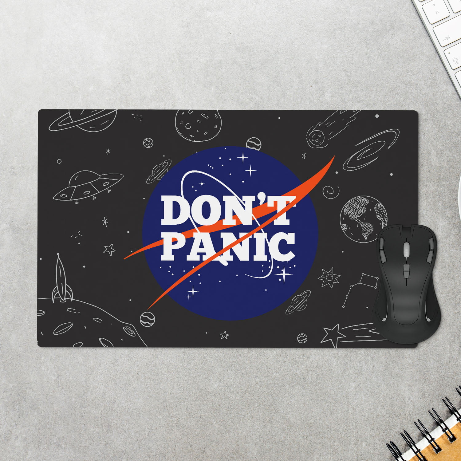 Mouse Pad Geek Don't Panic - Tamanho 35 x 25 cm Mouse Pad Geek Don't Panic - Tamanho 35 x 25 cm